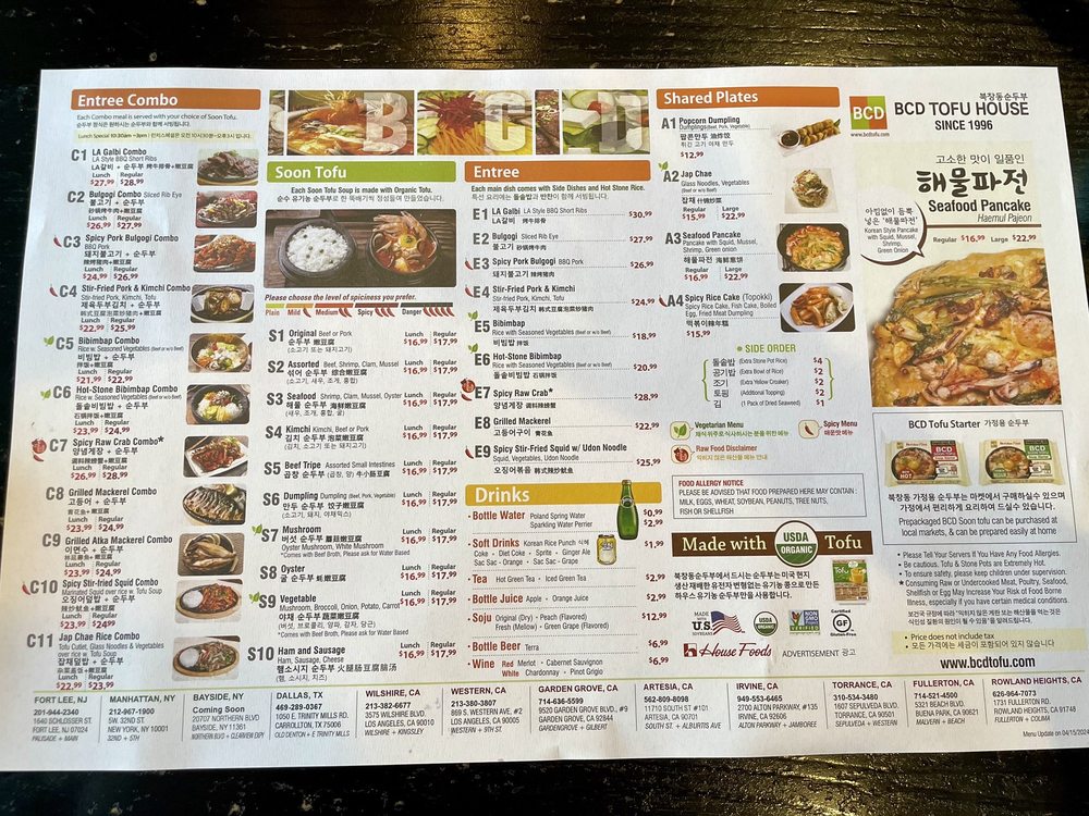 At BCD Tofu House Fort Lee, diners embark on a flavorful journey through authentic Korean cuisine. Located at 1640 Schlosser St, this vibrant spot is renowned for its hearty entrees such as the L.A. Galbi, marinated beef ribs that melt in your mouth, and the Spicy Pork Bulgogi, a fiery dish that tempts spice lovers.